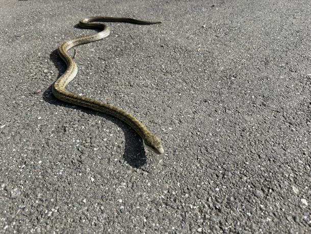 ⑨飯能生き物ハイク前に道路を散歩しているアオダイショウに出会いました🐍 2026年はやはりアオダイショウスタートでした✨