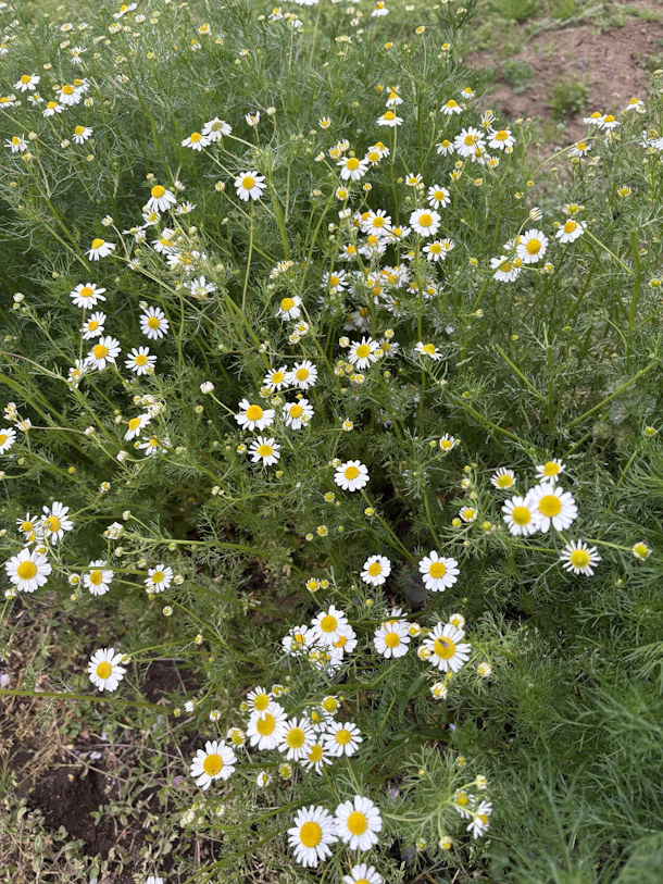 畑の脇のカモミールも開花しました。