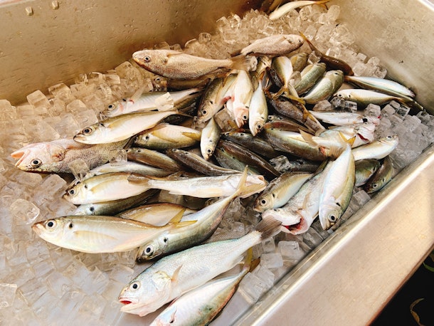 →釣り物のイシモチは刺身で食べるのがオススメです。