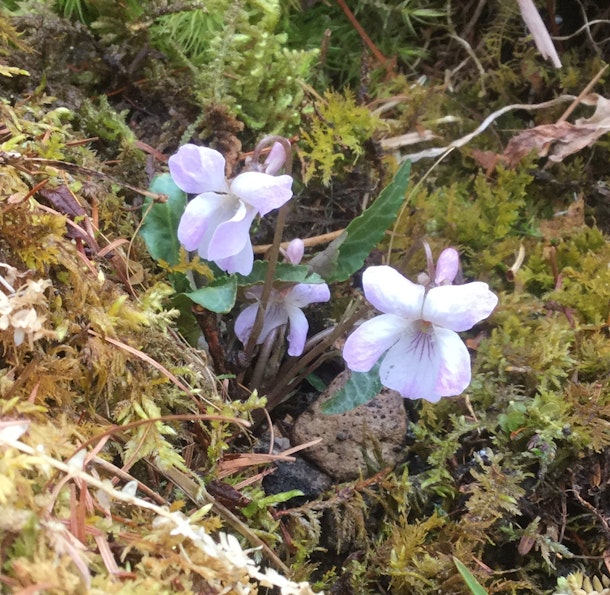 春が待ちきれずに咲くヒナスミレ、明るい森床を彩ります。