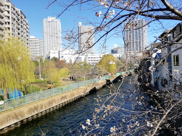 3/15の体験時は、佃の住吉神社の横の堀の桜はまだこんな感じでした。