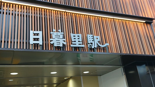 JR日暮里駅、西口を出たときに表示されている駅名。