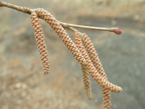 雌花は上を向いてどこかの木から花粉が飛んでくるのを待ちます。