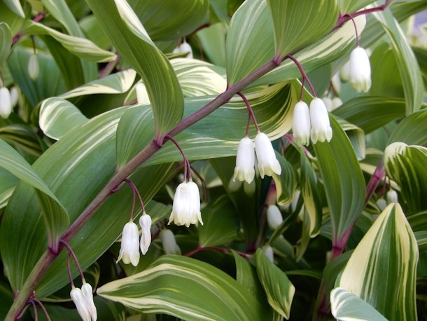 葉っぱは斑入り。ユリ科で、花は2個ずつぶるさがって咲くとあります。