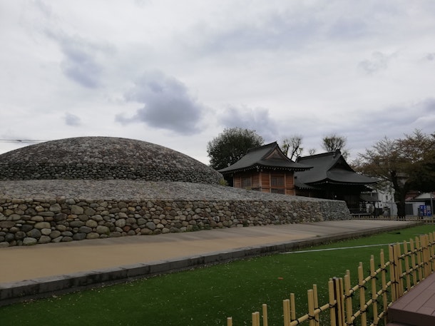 大化の改新の前後の豪族の墓らしい。この写真の奥の方が正面で、神社がっ立っている。