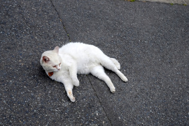 うみちゃんは路地道が自分の住処だと思っているようで、道の真ん中で寝ていたりします。