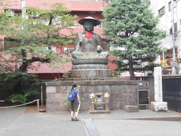 😊6日15時からタビカまち歩きを開催しました。怖いので歌舞伎町はかすめるだけでした。お客様は杉並の荻窪からお越しです:①太宗寺の銅地蔵です。②住いを出る出で立ちです。