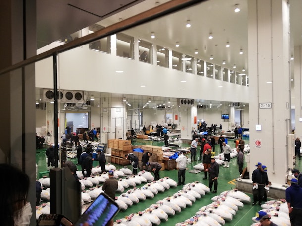 豊洲市場、臨場感あふれるマグロ競りデッキでの見学ツアー