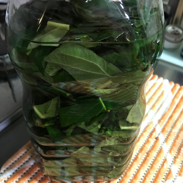「大寒」の今日1/20、今年も庭の枇杷の葉を収穫して「枇杷の葉酒」を漬け込みました。