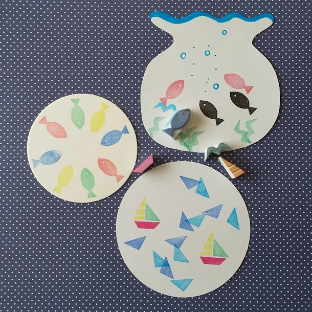 簡単なはんこを彫って、楽しく捺してみましょう。