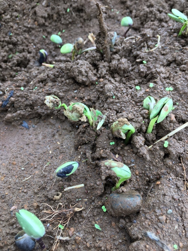 先日種まきした大豆は無事に発芽しています♪