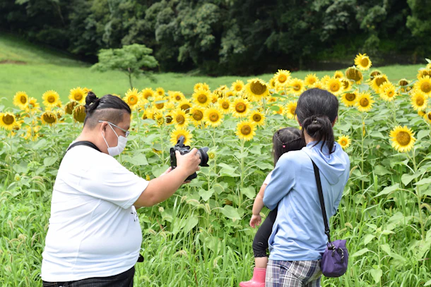 昨日は久しぶりの晴天! 牧場の牛や子ヤギ、ひまわりも元気に空を見上げていました。