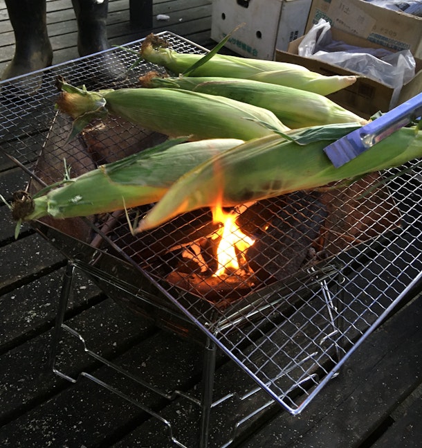 写真は、皮つきトウモロコシの丸焼きです。