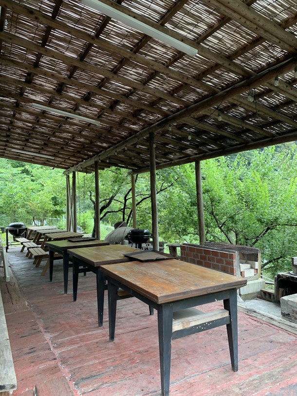 (テラスにはピザ窯!川を眺めて入れる五右衛門風呂も!子どもが好きそう)