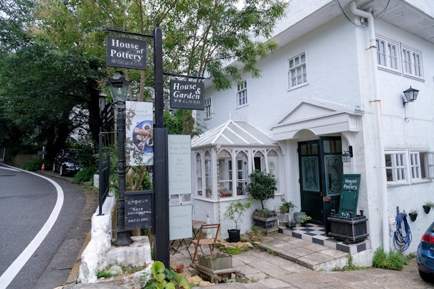 バス停から3分ほど鎌倉駅側に歩くと右側に見えてくる白亜の建物がハウスオブポタリー。