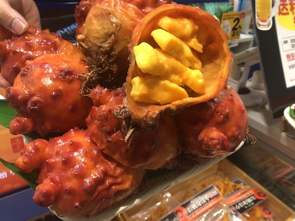 海のパイナップルと言われていて、初めて見た人はびっくりする、見た目をしています。