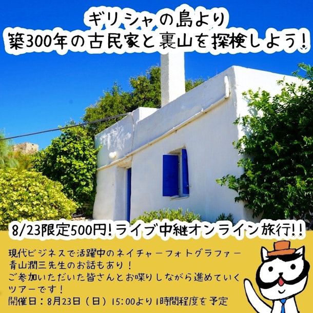 8/23ライブ中継500円オンライン旅行!ギリシャの古民家と自然