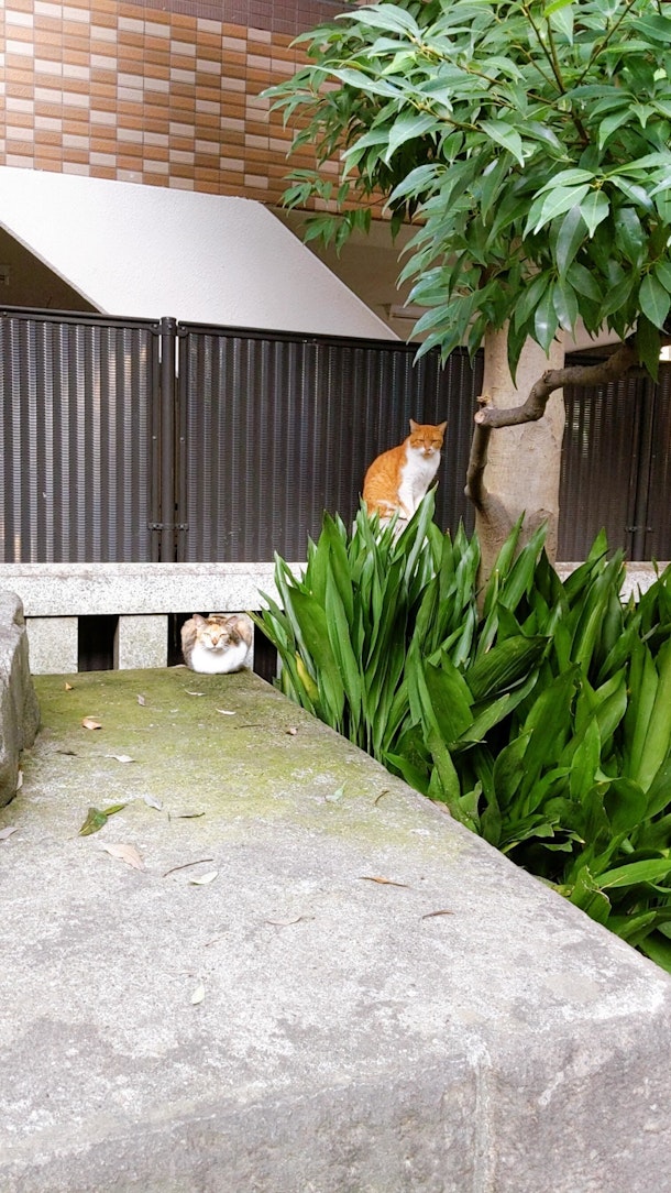 都会のコンクリートで周りは車がビュンビュン走っているのに、神社の敷地内中は静かで2箇所の神社行ったけどどちらともに猫様がいた。