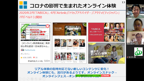 お話をお聞きすると、オンライン体験の中の、特に最近、流行の旅行関係の知識の棚卸しに来られたようです。