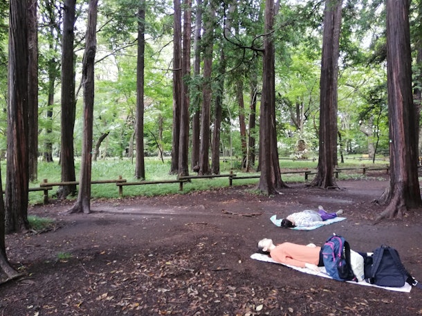 集合時間の前にひと前降ったけど、集合した頃には雨も止んだので、木陰に寝転んで雨上がりの森で心と体を解放☆彡