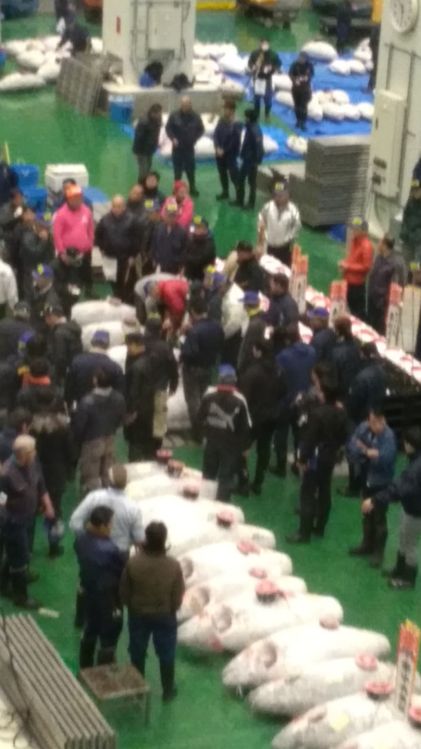 マグロの競りは、5日は早めに進んでました。6時にこれた二名のかたはかろうじて冷凍マグロの競りを見学いただきました。流石に初競り普段より多めのひとがでていました。