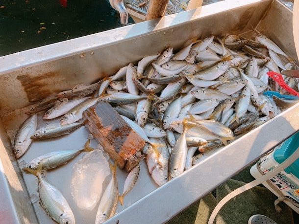 二度ほどホシザメがヒットしてハリスを切られたお父さんも。今の季節は豆鯵が多いので、あたりに気づかないと、サメやヒラメがヒットします。