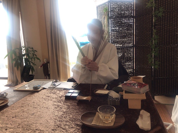 本日の「祓い清め!ほうろく灸祈祷/手相&易占い/塩守り作り」も仲良し2人組!