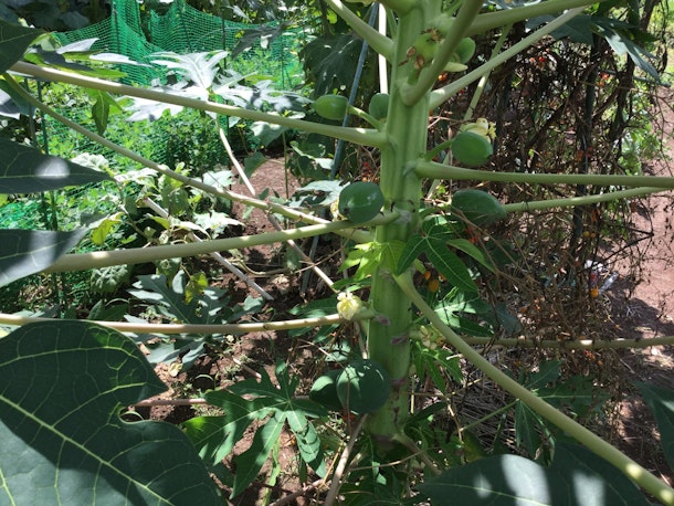タビカを初めてもうすぐ一年になろうとしています。色々な方に出会いホストとして楽しく充実した日々を過ごしながら珍しい野菜栽培をしています。今年植えた青パパイヤの木です。はじめての挑戦ですがだんだんと大きく育っています。植物は手入れをしてあげて、ポイントを見極めてあげればしっかりと成長してくれることも多いです。