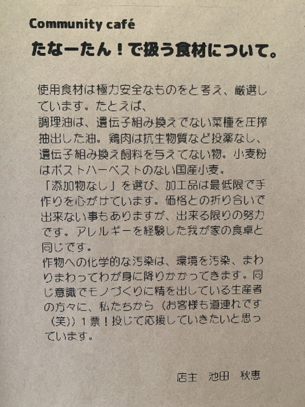 寄(やどりき)でオープンした池田さんのお店「たなーたん」