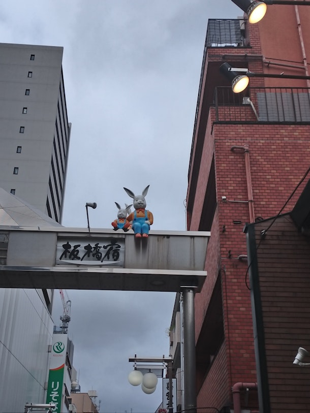 板橋宿(商店街)入口には、ウサギさんがお出迎え。