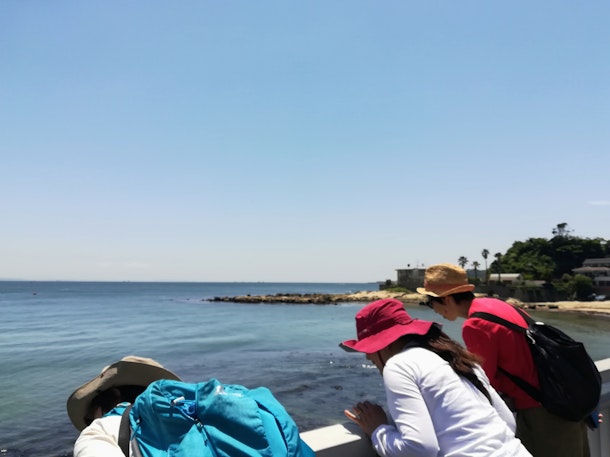 観音崎大橋からお魚が泳いでいるのを眺めています。