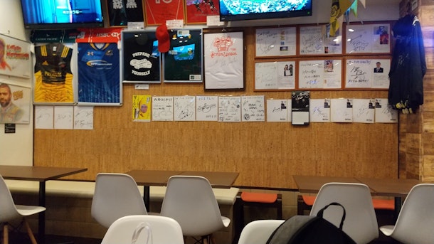 このお店、東京都府中市にあります。サインがあるスポーツバーだけなら普通だよね。