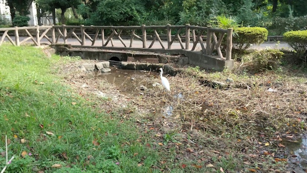 途中の分倍河原の古戦場跡の公園にてさぎがエサ取ってました!