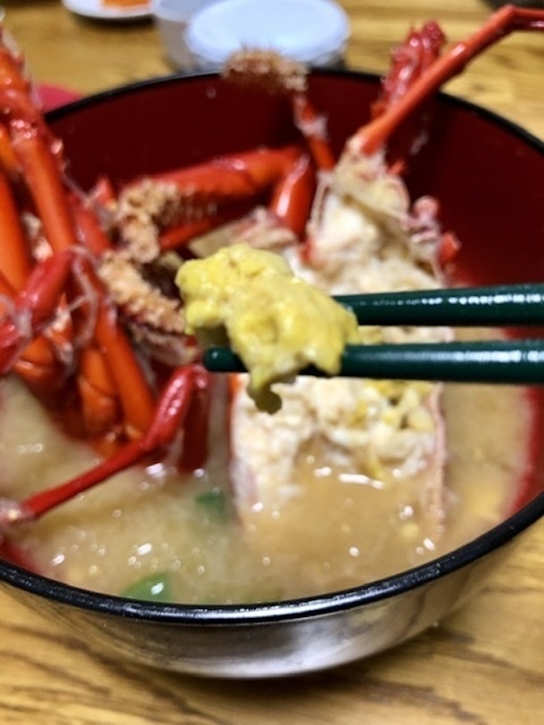 イセエビの下半身を捌いたら、次は頭の味噌汁です。