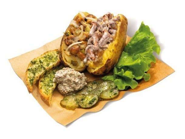 ホクホクの付加したジャガイモにバターを塗りつけて、お客が選んだ具(ピクルスマヨ和え等)を乗せて食べるファーストフードです。日本人の口に合う味で、具を選ぶのもケース内のを見て指差せばいいので簡単。