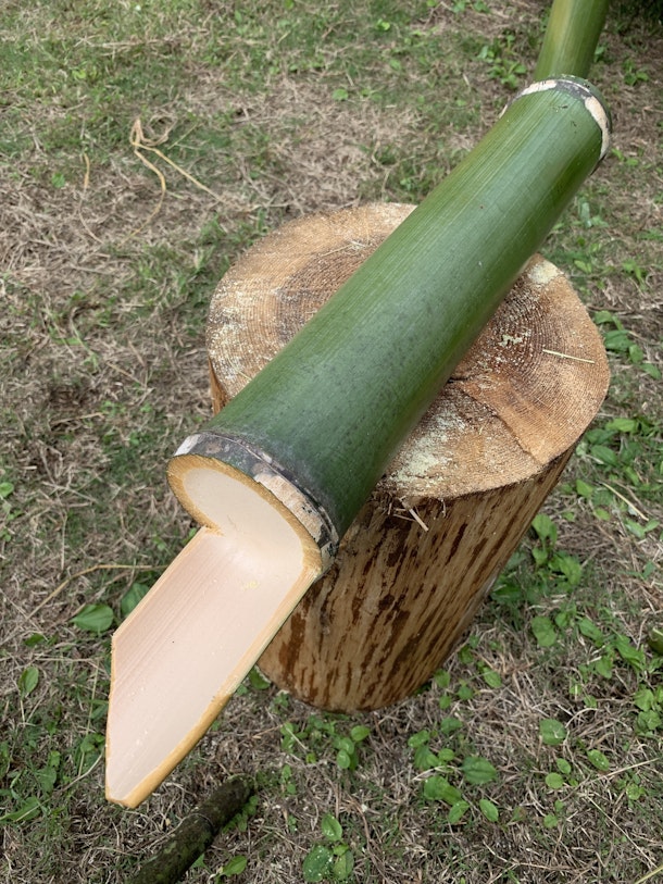 竹を切り出して作った竹筒。