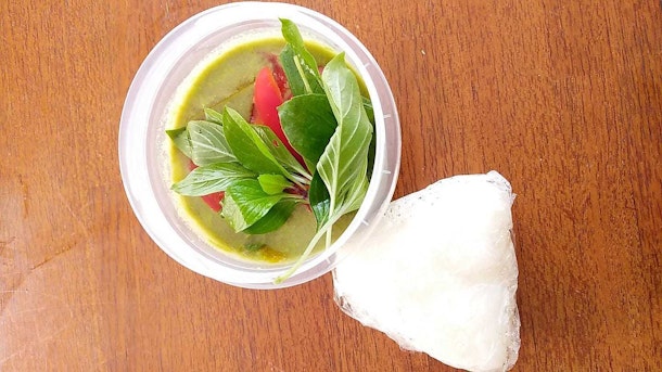 グリーンカレーと 、白飯おにぎり。
