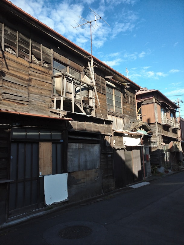 台東区橋場。明治通りから一本入った路地裏はノスタルジックな木造建築。
