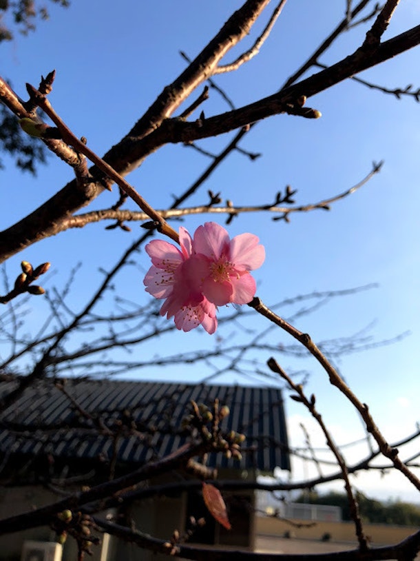 Kawazu cherry tree of pretty pink color like 6 wheels already