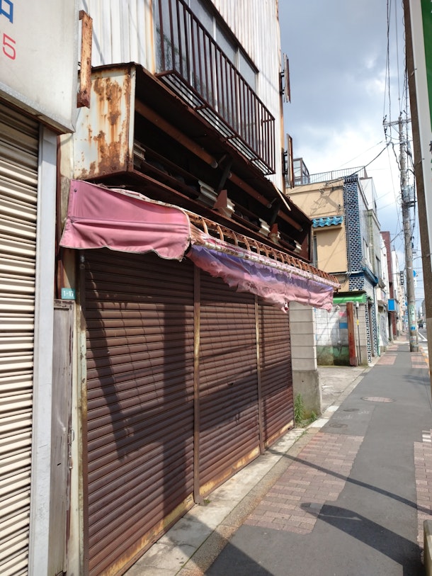 商店街にはレトロな建物が多く存在する。しかしシャッターが閉まったままのお店もあり残念である。(江戸川区松江)