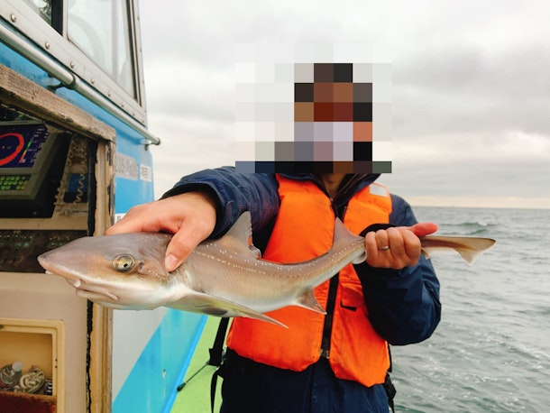 このアジ釣り、意外といろんな魚が釣れるのですが、秋以降「ホシザメ」という沿岸に生息するサメがよく釣れています。