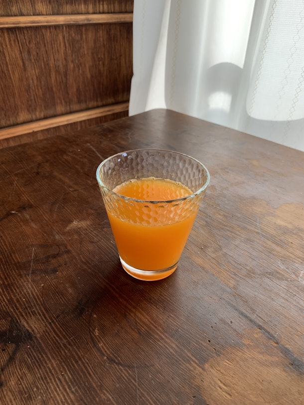 収穫したばかりのみかんをギュギュッと生搾りジュースです😁