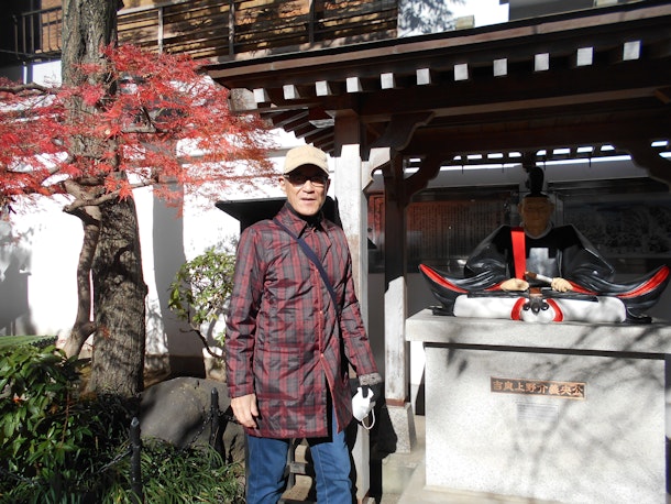 12月15日はタビカまち歩き「忠臣蔵、吉良邸討ち入りを実感!勝海舟、龍之介、松尾芭蕉に縁の地も巡る https://tabica.jp/travels/3641 」を開催し、女性一人が参加されました。吉良邸跡でゲストに撮ってもらったホストです。