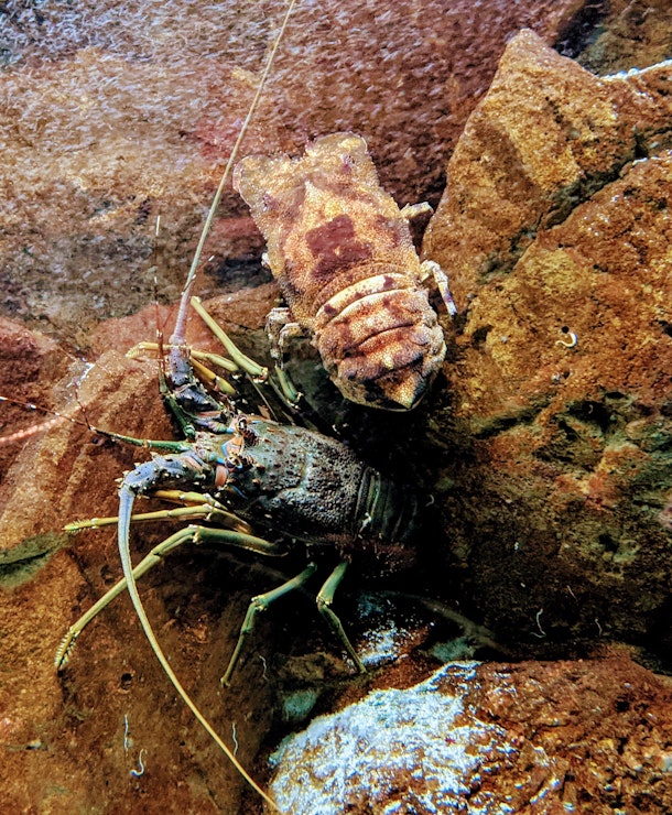 画像は和歌山県の京大水族館の巨大コブセミエビと巨大シマイセエビです。脊椎動物(魚)よりも甲殻類やヒトデやホヤとか無脊椎動物のほうが多い、お気に入りの水族館です。