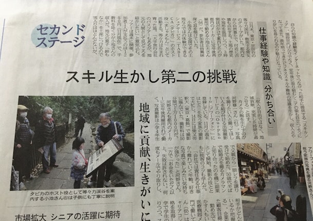 11月29日開催の等々力渓谷、野毛大塚古墳、等々力不動尊コースの街歩きの様子が12月17日日経新聞夕刊のセカンドステージのページで紹介されました。4歳の子に地層の説明をしたのは初めての経験で、3時間、渓谷と地層と横穴墳と古墳と湧水と滝行と川の合流点と河川氾濫とお不動様の話をさせていただきました。ご興味ある方、このコースの予約登録をお願い致します。次回は1月4日開催です。