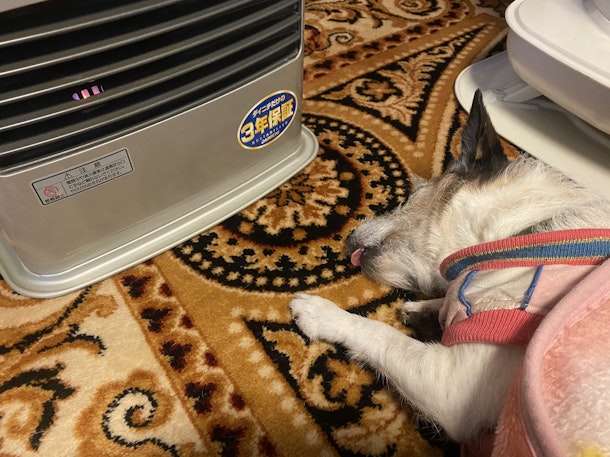 小型犬て意外と寒がりなんです。歳も12才の老犬ですし、疲れやすくなったんですかね。