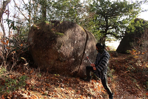 鬼滅の刃の名シーンを再現できるそっくりな岩を藪の中に発見!