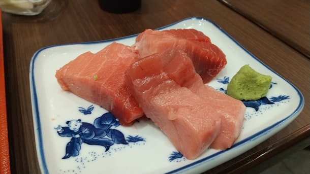 ここのマグロはこの厚切りがすごい。(厚切りで食べると旨いんですこれが・・・自分も自宅で切るときは厚切りが多い。柵で買って試してみるといいですよ。)