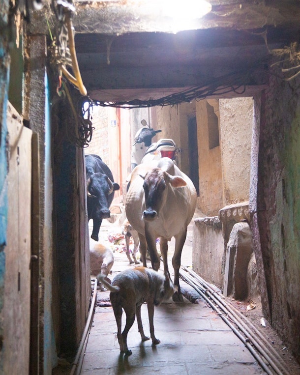 インドの街中には神聖な神の使いである牛が闊歩しております。