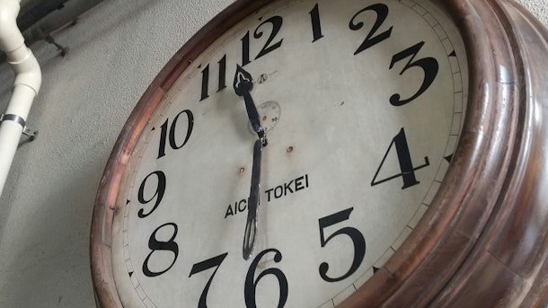 築地の路地裏、かなりレトロなこの時計。となりのパイプから想像してください。かなりでかいんです。多分お店の入り口付近でも見れるんでないかな!?そして現役で動いてます。